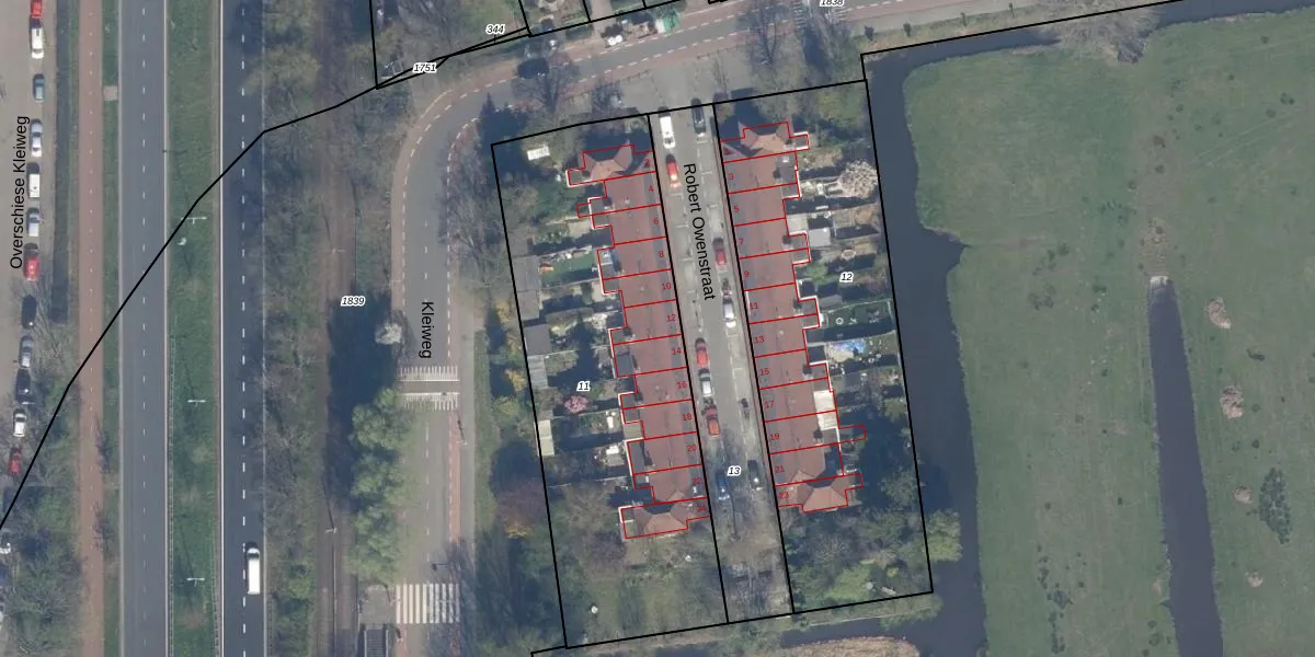 Het perceel waarop Robert Owenstraat 12 staat heeft een oppervlakte van 1930 m². Dit is een zeer groot perceel. De perceeloppervlakte wordt geregistreerd door het Kadaster. Gedetailleerde informatie over de maten van dit perceel kunt u vinden in het rapport Kadastrale kaart met maatvoering van Robert Owenstraat 12.