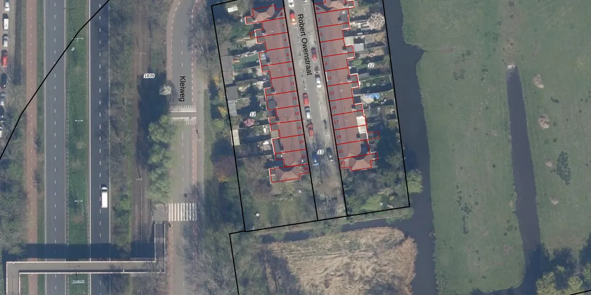 Het perceel waarop Robert Owenstraat 20 staat heeft een oppervlakte van 1930 m². Dit is een zeer groot perceel. De perceeloppervlakte wordt geregistreerd door het Kadaster. Gedetailleerde informatie over de maten van dit perceel kunt u vinden in het rapport Kadastrale kaart met maatvoering van Robert Owenstraat 20.