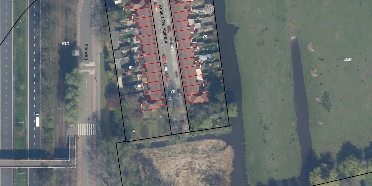 Het perceel waarop Robert Owenstraat 21 staat heeft een oppervlakte van 1760 m². Dit is een zeer groot perceel. De perceeloppervlakte wordt geregistreerd door het Kadaster. Gedetailleerde informatie over de maten van dit perceel kunt u vinden in het rapport Kadastrale kaart met maatvoering van Robert Owenstraat 21.