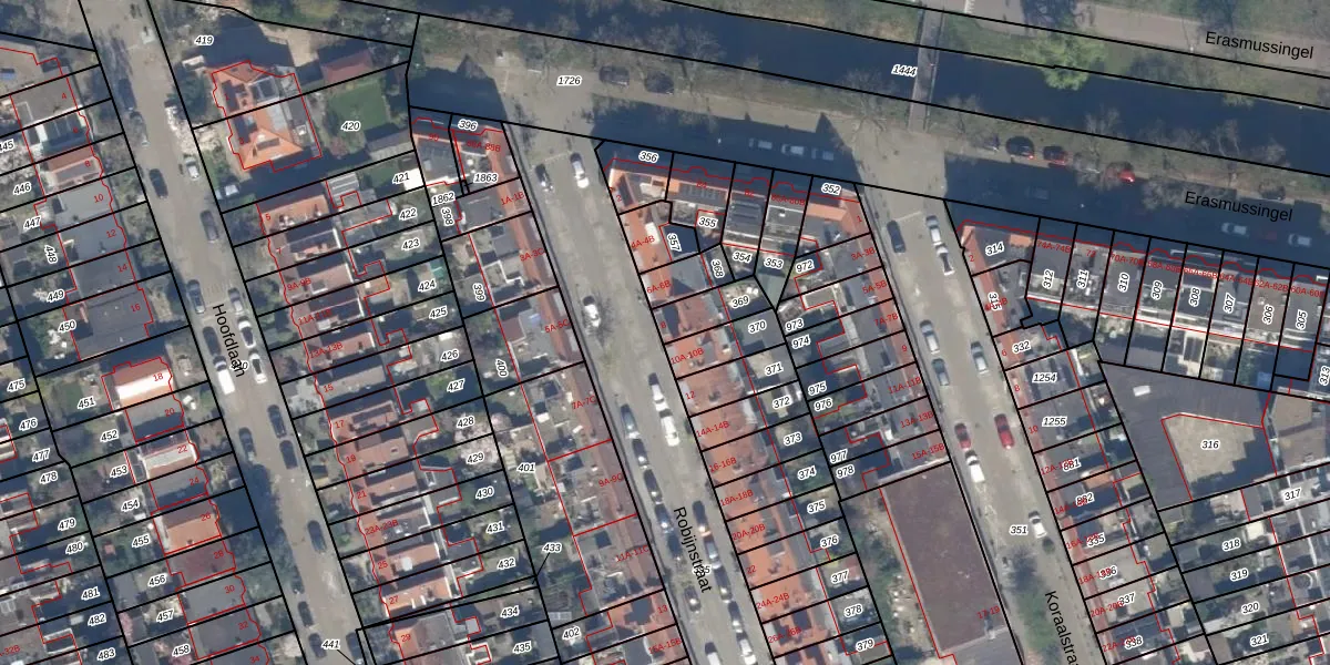 Gebruik de zoekbalk of klik op een perceel voor informatie over de adressen binnen dit perceel.