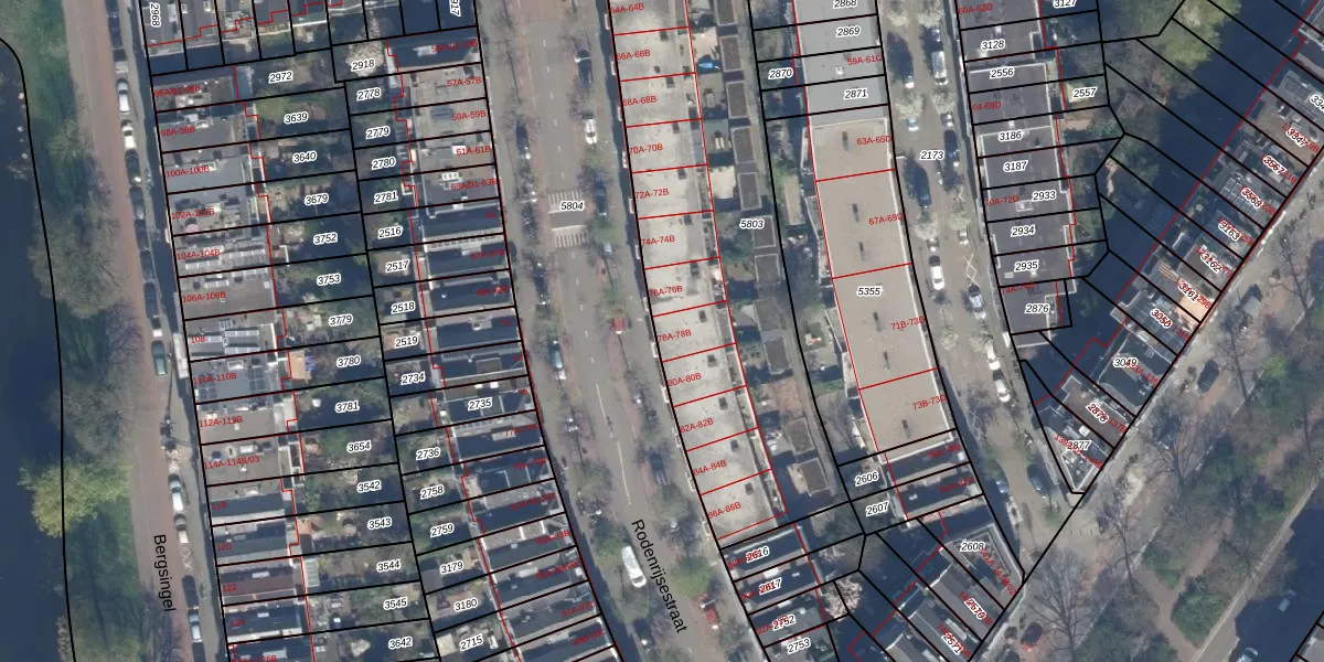 Het adres is gelegen op perceel 5803 in de sectie Y en de kadastrale gemeente Rotterdam. De kadastrale aanduiding is aldus RTD09-Y-5803. De oppervlakte van het perceel is 1790 m². Dat is groter dan gemiddeld in Rotterdam, waar de gemiddelde perceeloppervlakte op 443,14 m² ligt. Het grootste perceel in de kadastrale gemeente is 7,0 ha. Het kleinste perceel heeft een oppervlakte van 0 m². Op het perceel liggen in totaal 24 adressen. De huidige grenzen van het perceel zijn digitaal in de Basisregistratie Kadaster (BRK) geregistreerd op 28-04-2005.