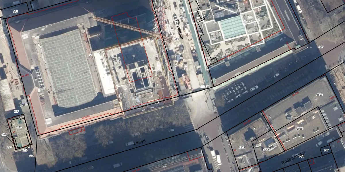 Het adres is gelegen op perceel 8 in de sectie AD en de kadastrale gemeente Rotterdam. De kadastrale aanduiding is aldus RTD08-AD-8. Het perceel is met 5993 m² relatief groot. Het gemiddelde ligt in de kadastrale gemeente Rotterdam op 689,2 m². De grootste perceeloppervlakte in de kadastrale gemeente is 4,0 ha. De kleinste oppervlakte bedraagt 0 m². Op het perceel zijn 326 adressen aanwezig. De huidige grenzen van het perceel zijn digitaal in de Basisregistratie Kadaster (BRK) geregistreerd op 04-10-2006.