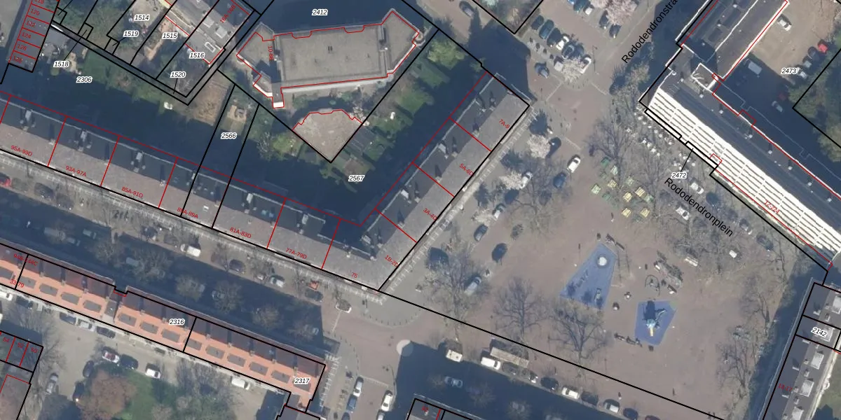 Rododendronplein 3-C is gelegen op kadastraal perceel SBK01C2567. Deze kadastrale aanduiding is uniek en wordt gebruikt door het Kadaster om eigendomsrechten en andere zakelijke rechten vast te leggen. Het perceel maakt onderdeel uit van de kadastrale gemeente Schiebroek.