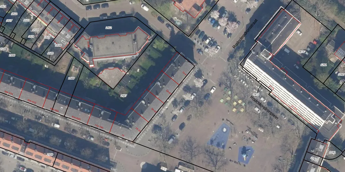 Rododendronplein 6-A is gelegen op kadastraal perceel SBK01C2567. Deze kadastrale aanduiding is uniek en wordt gebruikt door het Kadaster om eigendomsrechten en andere zakelijke rechten vast te leggen. Het perceel maakt onderdeel uit van de kadastrale gemeente Schiebroek.