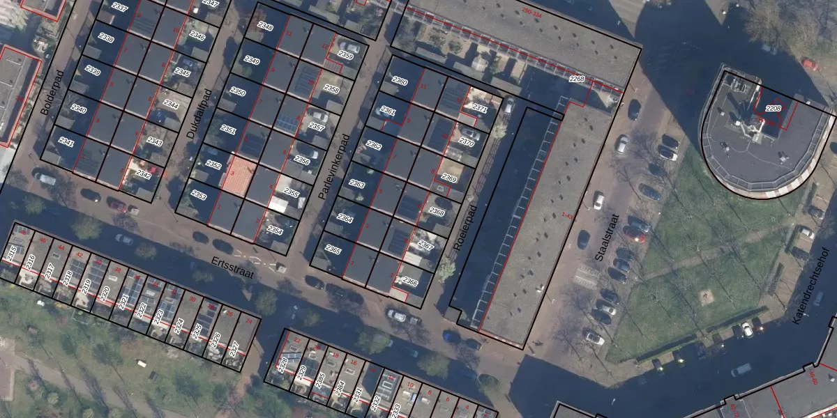 Roeierpad 6 is gelegen op kadastraal perceel RTD05P2368. Deze kadastrale aanduiding is uniek en wordt gebruikt door het Kadaster om eigendomsrechten en andere zakelijke rechten vast te leggen. Het perceel maakt onderdeel uit van de kadastrale gemeente Rotterdam.