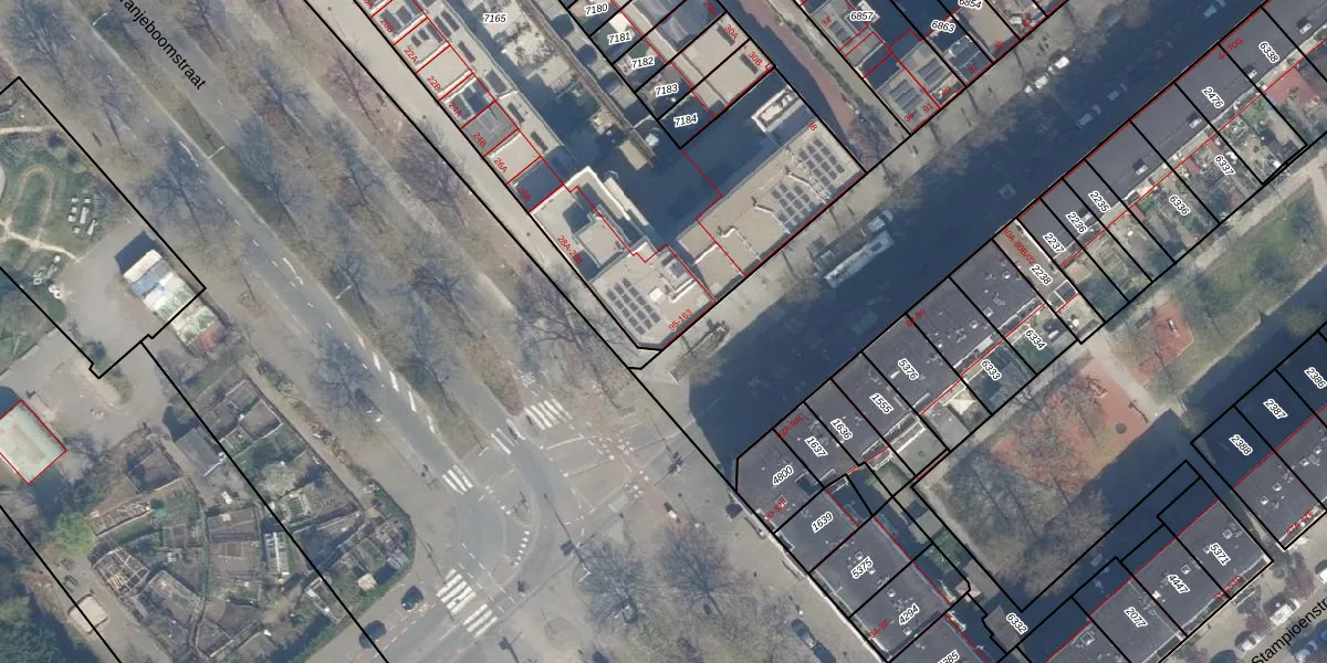 Het perceel waarop het adres ligt is RTD05-Q-7165. De afkorting 'RTD05' staat voor kadastrale gemeente Rotterdam. De oppervlakte van het perceel is 3292 m². Dat is groter dan gemiddeld in Rotterdam, waar de gemiddelde perceeloppervlakte op 1401,79 m² ligt. Het grootste perceel in de kadastrale gemeente is 36,8 ha. Het kleinste perceel heeft een oppervlakte van 0 m². Er zijn 54 adressen aanwezig op het perceel. De laatste wijziging in het de Basisregistratie Kadaster (BRK) was op 21-05-2025.