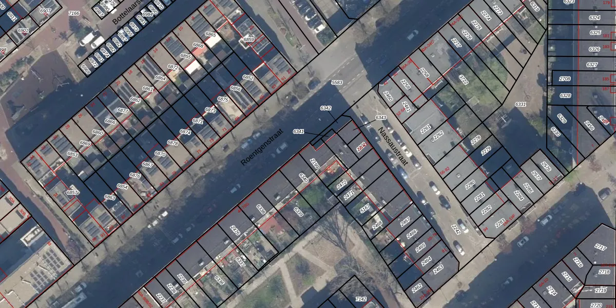 Roentgenstraat 50 is gelegen op kadastraal perceel RTD05Q2199. Deze kadastrale aanduiding is uniek en wordt gebruikt door het Kadaster om eigendomsrechten en andere zakelijke rechten vast te leggen. Het perceel maakt onderdeel uit van de kadastrale gemeente Rotterdam.