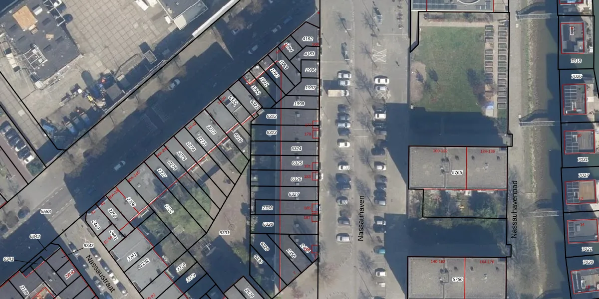 Het adres ligt op het perceel RTD05-Q-6324, dat zich in de kadastrale gemeente Rotterdam bevindt. De gemiddelde perceelgrootte in Rotterdam is 1401,79 m². Dit perceel is kleiner: de perceeloppervlakte bedraagt 110 m². Het grootste perceel in de kadastrale gemeente is 36,8 ha. Het kleinste perceel heeft een oppervlakte van 0 m². Op het perceel liggen in totaal 48 adressen. De huidige grenzen van het perceel zijn digitaal in de Basisregistratie Kadaster (BRK) geregistreerd op 29-01-2003.