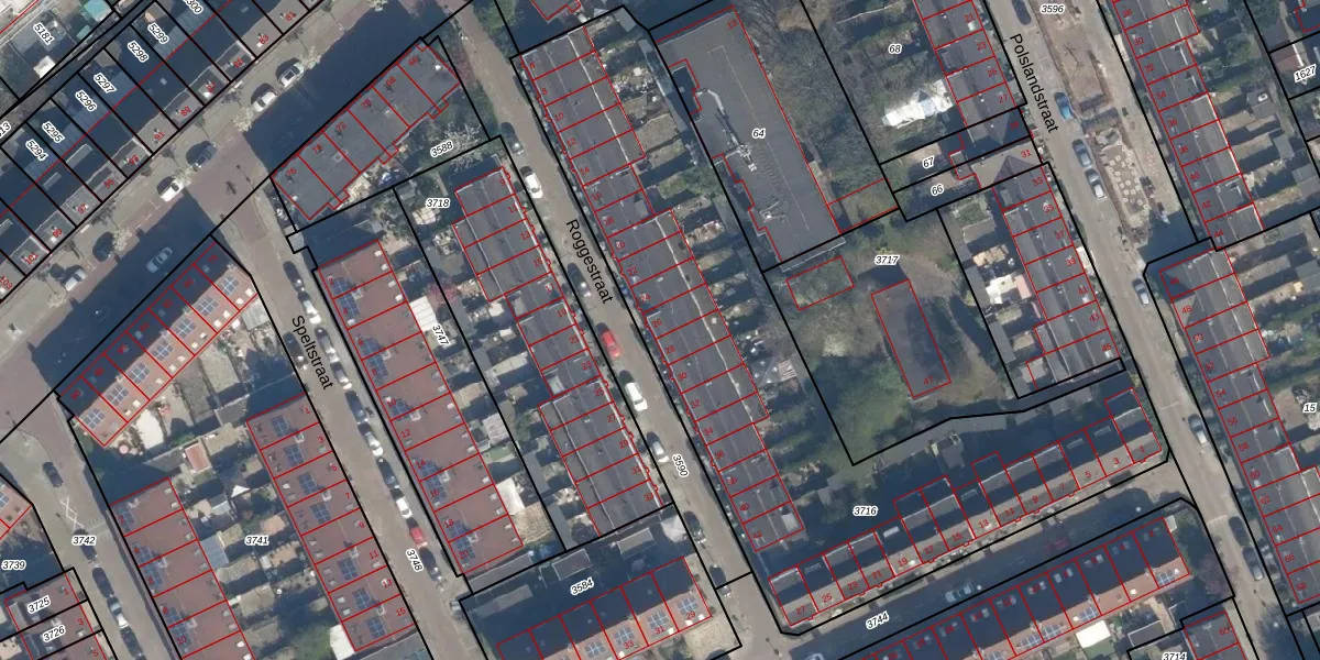 Het perceel waarop het adres ligt is CLS00-H-3716. De afkorting 'CLS00' staat voor kadastrale gemeente Charlois. De oppervlakte van het perceel is 3387 m². Dat is groter dan gemiddeld in Charlois, waar de gemiddelde perceeloppervlakte op 1147,69 m² ligt. De grootste perceeloppervlakte in de kadastrale gemeente is 1,09 km². De kleinste oppervlakte bedraagt 0 m². Er zijn 40 adressen aanwezig op het perceel. De huidige grenzen van het perceel zijn digitaal in de Basisregistratie Kadaster (BRK) geregistreerd op 10-06-2003.