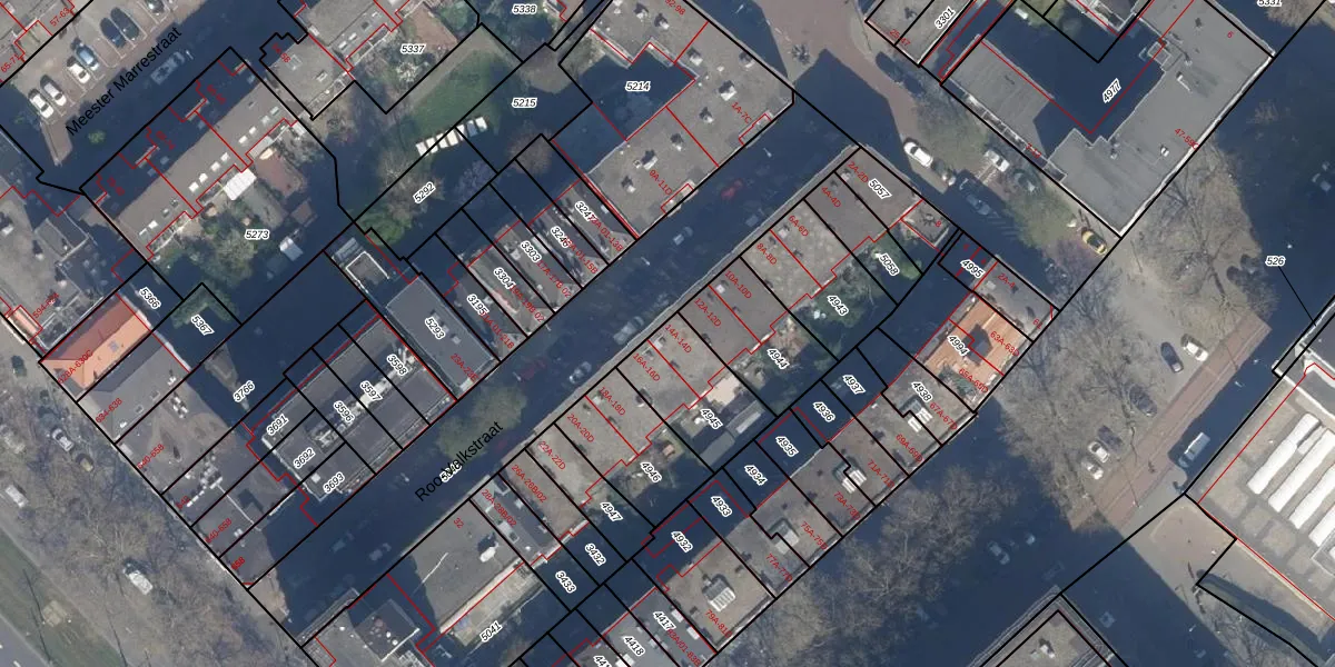Het perceel waarop het adres ligt is RTD08-X-4945. De afkorting 'RTD08' staat voor kadastrale gemeente Rotterdam. Het perceel is 272 m² groot. Dat is kleiner dan de gemiddelde perceeloppervlakte in Rotterdam, dat op 689,2 m² ligt. Het kleinste perceel in de kadastrale gemeente is 0 m² groot. De grootste perceeloppervlakte is 4,0 ha. Op het perceel zijn 8 adressen aanwezig. De huidige grenzen van het perceel zijn digitaal in de Basisregistratie Kadaster (BRK) geregistreerd op 24-01-2003.
