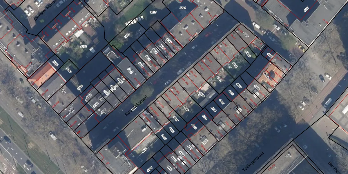 Het perceel waarop het adres ligt is RTD08-X-4946. De afkorting 'RTD08' staat voor kadastrale gemeente Rotterdam. Het perceel is 272 m² groot. Dat is kleiner dan de gemiddelde perceeloppervlakte in Rotterdam, dat op 689,2 m² ligt. Het kleinste perceel in de kadastrale gemeente is 0 m² groot. De grootste perceeloppervlakte is 4,0 ha. Er zijn 8 adressen aanwezig op het perceel. In de Basisregistratie Kadaster (BRK) werden de grenzen van het perceel geregistreerd op 10-07-2003.