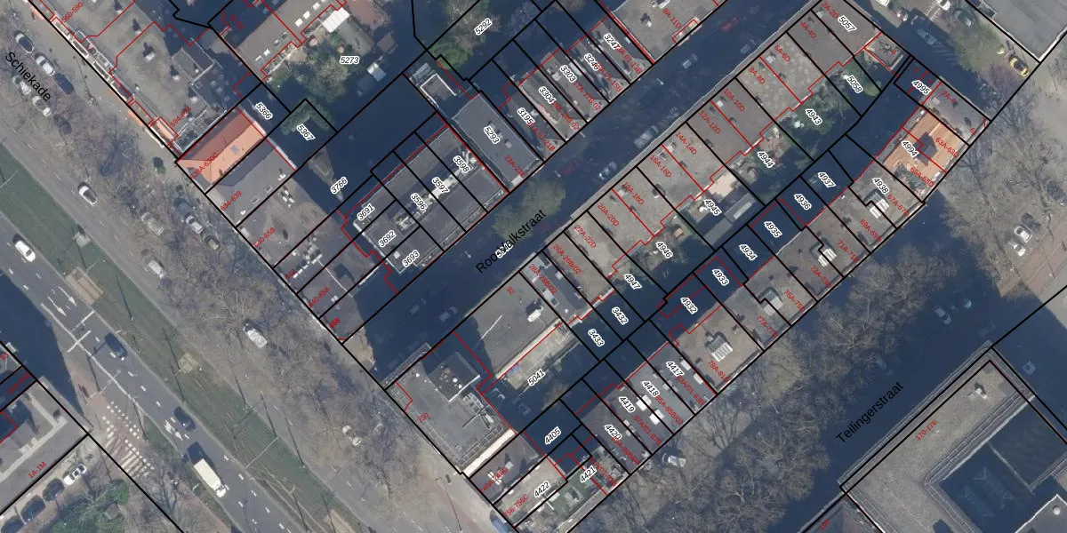 Het perceel waarop het adres ligt is RTD08-X-3433. De afkorting 'RTD08' staat voor kadastrale gemeente Rotterdam. Het perceel is 129 m² groot. Dat is kleiner dan de gemiddelde perceeloppervlakte in Rotterdam, dat op 689,2 m² ligt. Het kleinste perceel in de kadastrale gemeente is 0 m² groot. De grootste perceeloppervlakte is 4,0 ha. Er zijn 3 adressen aanwezig op het perceel. De laatste wijziging in het de Basisregistratie Kadaster (BRK) was op 13-02-2003.