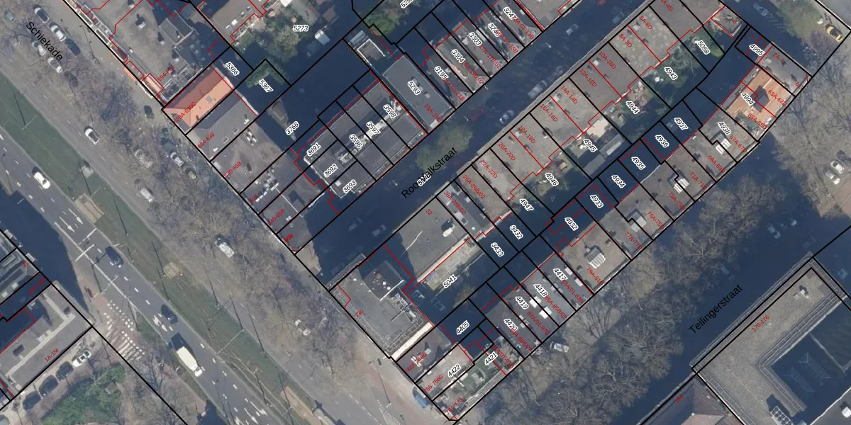Het perceel waarop het adres ligt is RTD08-X-5041. De afkorting 'RTD08' staat voor kadastrale gemeente Rotterdam. De oppervlakte van het perceel is 778 m². Dat is groter dan gemiddeld in Rotterdam, waar de gemiddelde perceeloppervlakte op 689,2 m² ligt. Het kleinste perceel in de kadastrale gemeente is 0 m² groot. De grootste perceeloppervlakte is 4,0 ha. Er zijn 2 adressen aanwezig op het perceel. De laatste wijziging in het de Basisregistratie Kadaster (BRK) was op 10-07-2003.