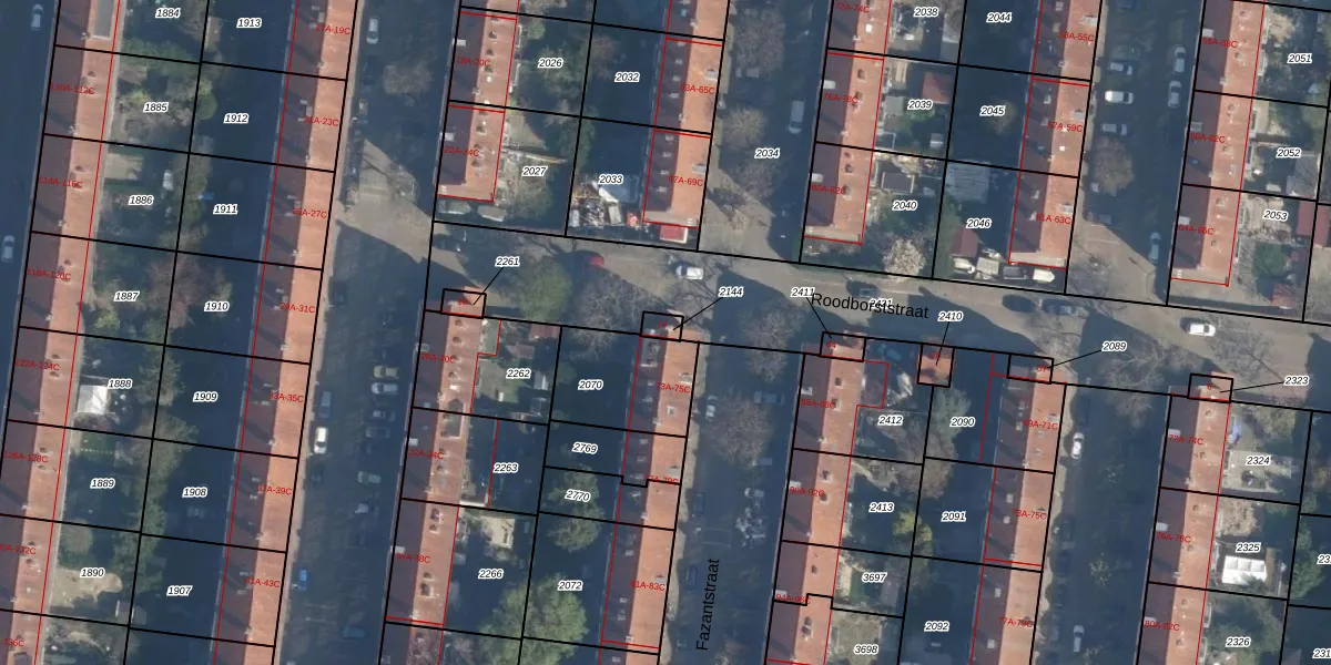 Roodborststraat 14 is gelegen op kadastraal perceel CLS00H2144. Deze kadastrale aanduiding is uniek en wordt gebruikt door het Kadaster om eigendomsrechten en andere zakelijke rechten vast te leggen. Het perceel maakt onderdeel uit van de kadastrale gemeente Charlois.