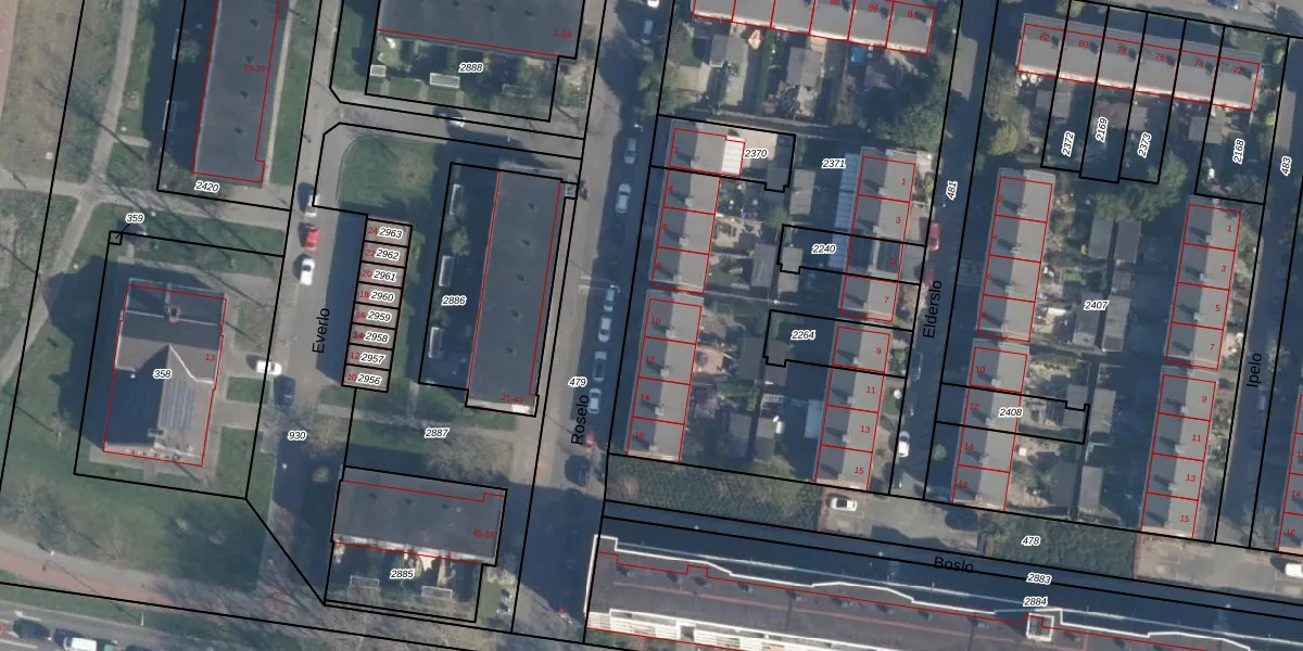Het perceel waarop Roselo 10 staat heeft een oppervlakte van 3045 m². Dit is een zeer groot perceel. De perceeloppervlakte wordt geregistreerd door het Kadaster. Gedetailleerde informatie over de maten van dit perceel kunt u vinden in het rapport Kadastrale kaart met maatvoering van Roselo 10.