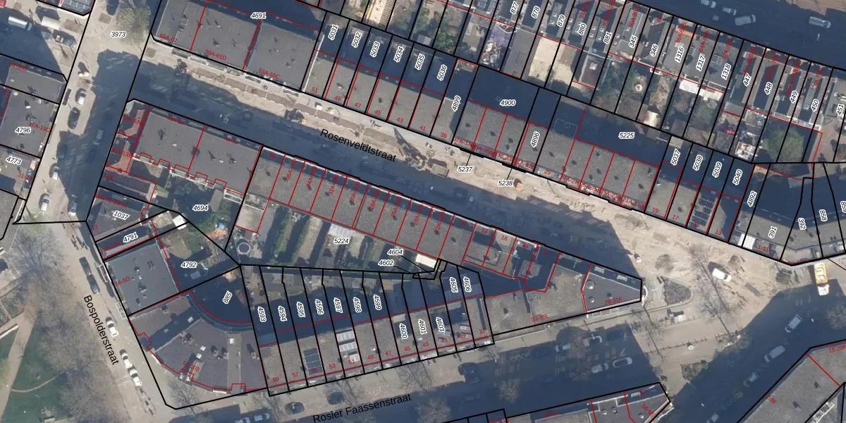 Het perceel waarop het adres ligt is DHV00-H-5224. De afkorting 'DHV00' staat voor kadastrale gemeente Delfshaven. De gemiddelde perceeloppervlakte in de kadastrale gemeente Delfshaven is 628,53 m². Dit perceel is met zijn 1770 m² dus groter dan gemiddeld. Het grootste perceel in de kadastrale gemeente is 22,2 ha. Het kleinste perceel heeft een oppervlakte van 0 m². Op het perceel zijn 35 adressen aanwezig. In de Basisregistratie Kadaster (BRK) werden de grenzen van het perceel geregistreerd op 23-06-2022.