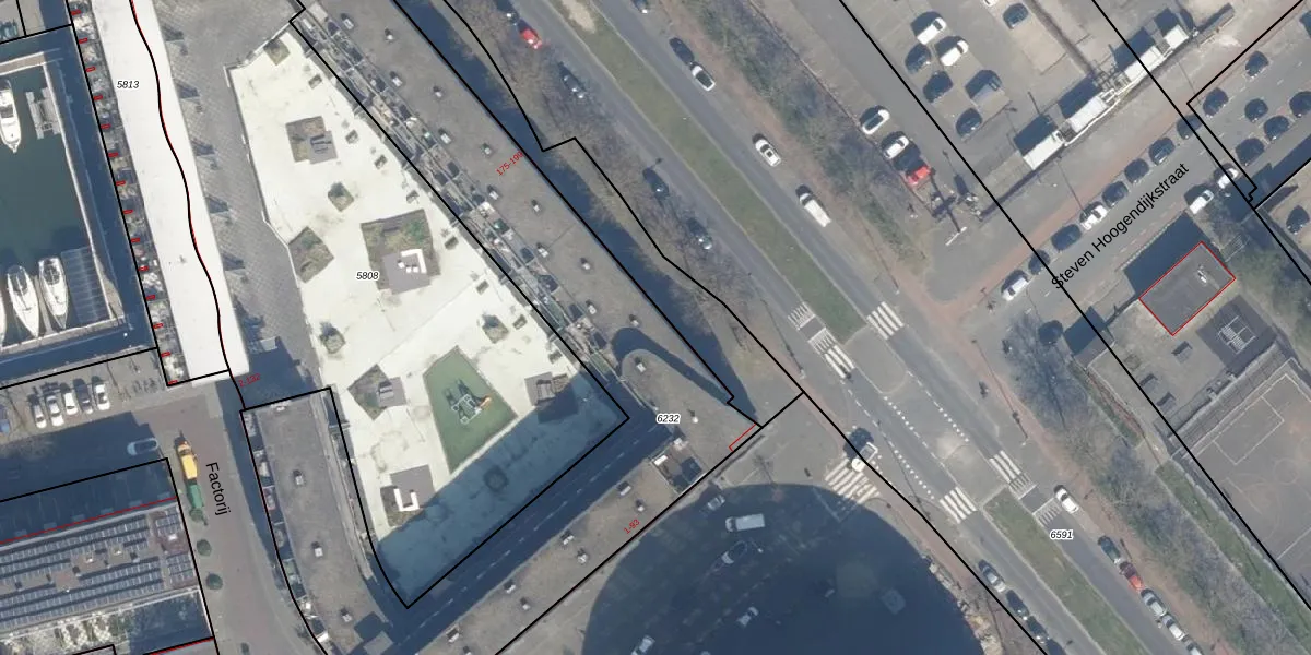 Het perceel waarop het adres ligt is RTD05-Q-6232. De afkorting 'RTD05' staat voor kadastrale gemeente Rotterdam. De gemiddelde perceeloppervlakte in de kadastrale gemeente Rotterdam is 1401,79 m². Dit perceel is met zijn 2768 m² dus groter dan gemiddeld. De grootste perceeloppervlakte in de kadastrale gemeente is 36,8 ha. De kleinste oppervlakte bedraagt 0 m². Er zijn 96 adressen aanwezig op het perceel. De huidige grenzen van het perceel zijn digitaal in de Basisregistratie Kadaster (BRK) geregistreerd op 22-07-2009.