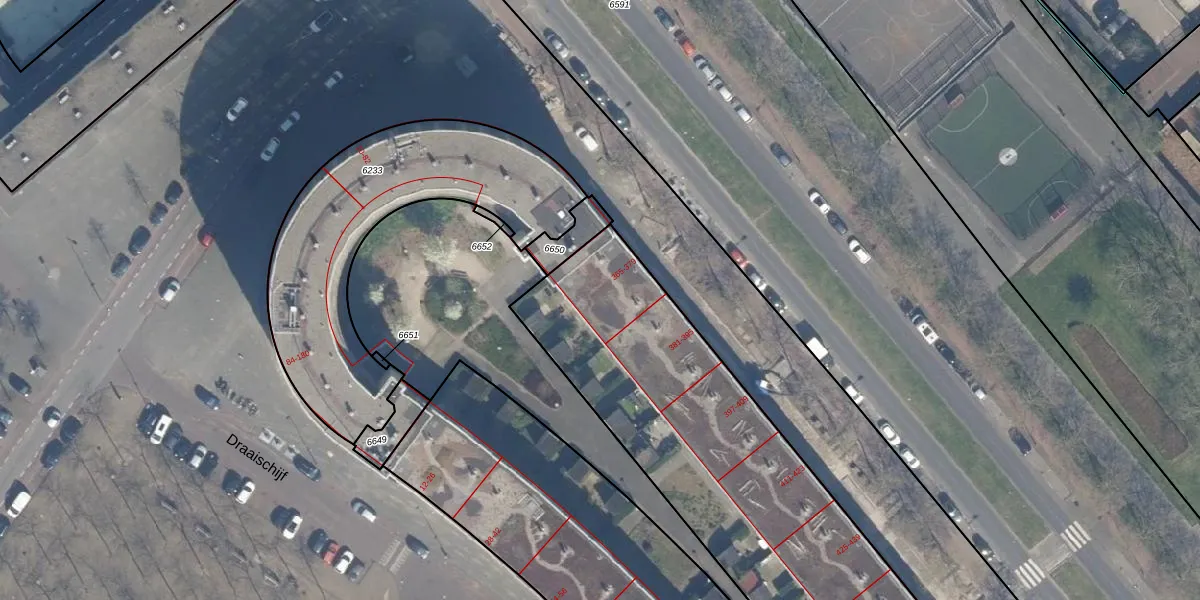 Het perceel waarop het adres ligt is RTD05-Q-6235. De afkorting 'RTD05' staat voor kadastrale gemeente Rotterdam. De gemiddelde perceeloppervlakte in de kadastrale gemeente Rotterdam is 1401,79 m². Dit perceel is met zijn 6739 m² dus groter dan gemiddeld. Het grootste perceel in de kadastrale gemeente is 36,8 ha. Het kleinste perceel heeft een oppervlakte van 0 m². Er zijn 158 adressen aanwezig op het perceel. De laatste wijziging in het de Basisregistratie Kadaster (BRK) was op 22-07-2009.