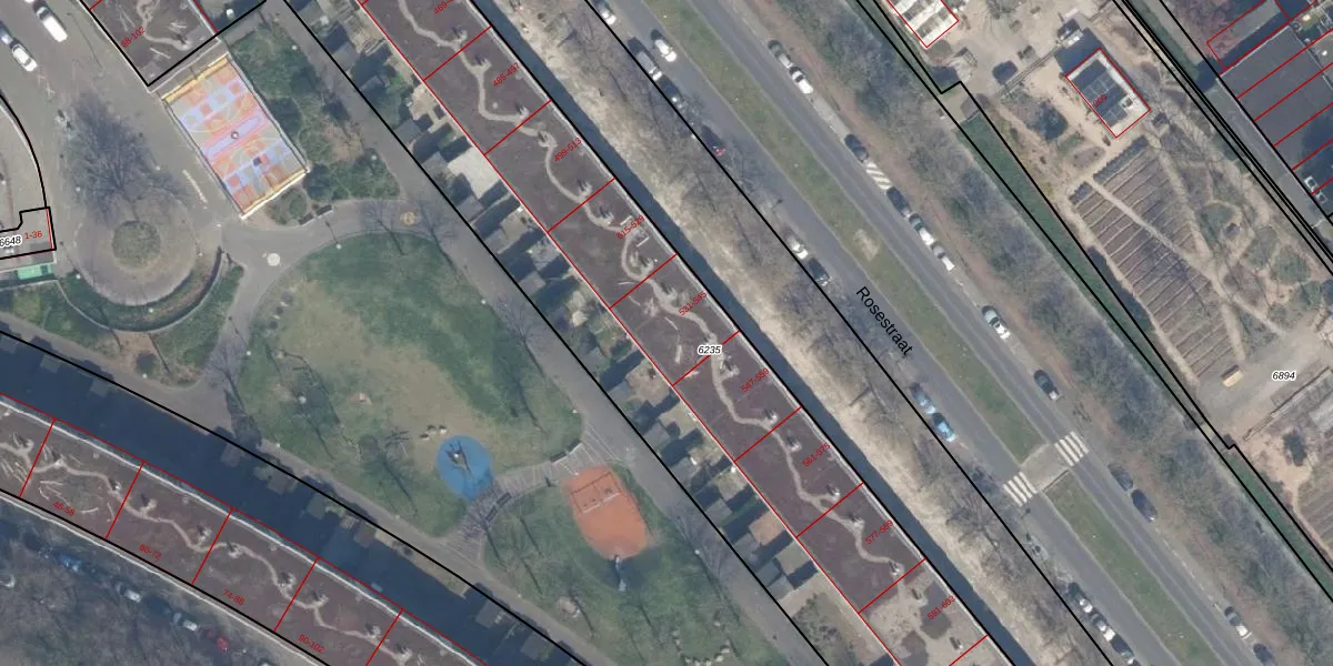 Het perceel waarop Rosestraat 539 staat heeft een oppervlakte van 6739 m². Dit is een zeer groot perceel. De perceeloppervlakte wordt geregistreerd door het Kadaster. Gedetailleerde informatie over de maten van dit perceel kunt u vinden in het rapport Kadastrale kaart met maatvoering van Rosestraat 539.