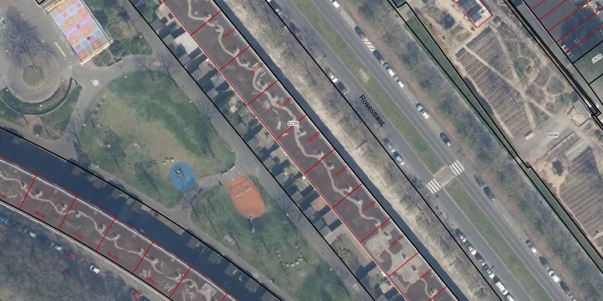 Rosestraat 553 is gelegen op kadastraal perceel RTD05Q6235. Deze kadastrale aanduiding is uniek en wordt gebruikt door het Kadaster om eigendomsrechten en andere zakelijke rechten vast te leggen. Het perceel maakt onderdeel uit van de kadastrale gemeente Rotterdam.