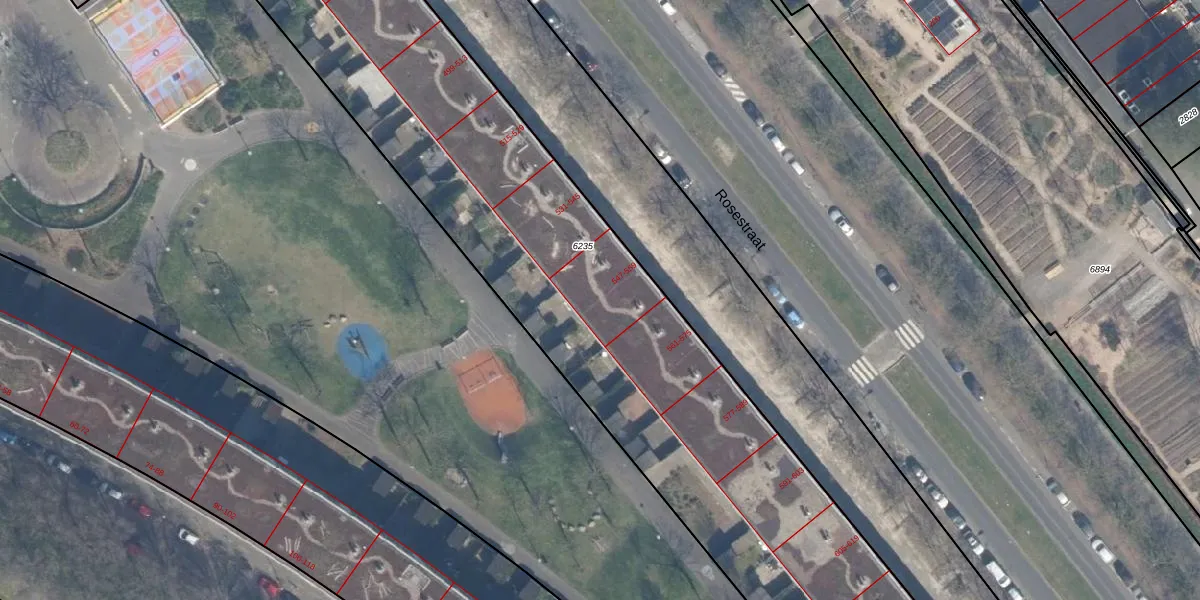Het perceel waarop Rosestraat 557 staat heeft een oppervlakte van 6739 m². Dit is een zeer groot perceel. De perceeloppervlakte wordt geregistreerd door het Kadaster. Gedetailleerde informatie over de maten van dit perceel kunt u vinden in het rapport Kadastrale kaart met maatvoering van Rosestraat 557.