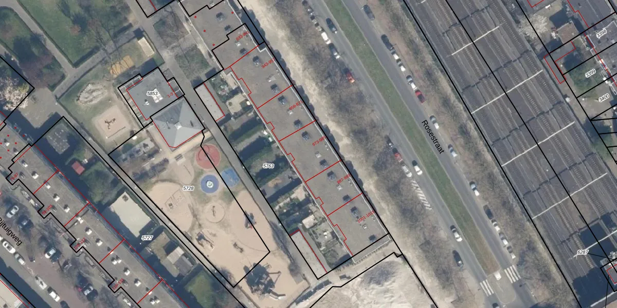 Rosestraat 979 is gelegen op kadastraal perceel RTD05Q5763. Deze kadastrale aanduiding is uniek en wordt gebruikt door het Kadaster om eigendomsrechten en andere zakelijke rechten vast te leggen. Het perceel maakt onderdeel uit van de kadastrale gemeente Rotterdam.