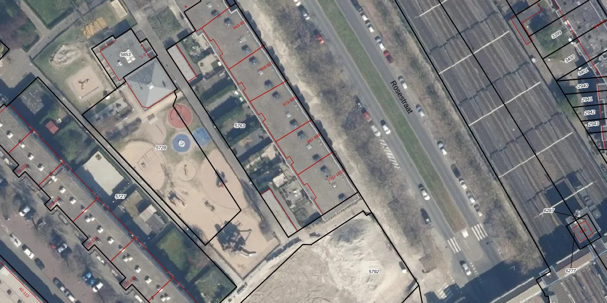 Rosestraat 997 is gelegen op kadastraal perceel RTD05Q5763. Deze kadastrale aanduiding is uniek en wordt gebruikt door het Kadaster om eigendomsrechten en andere zakelijke rechten vast te leggen. Het perceel maakt onderdeel uit van de kadastrale gemeente Rotterdam.