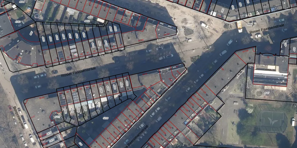 Rosier Faassenstraat 34 is gelegen op kadastraal perceel DHV00H5226. Deze kadastrale aanduiding is uniek en wordt gebruikt door het Kadaster om eigendomsrechten en andere zakelijke rechten vast te leggen. Het perceel maakt onderdeel uit van de kadastrale gemeente Delfshaven.