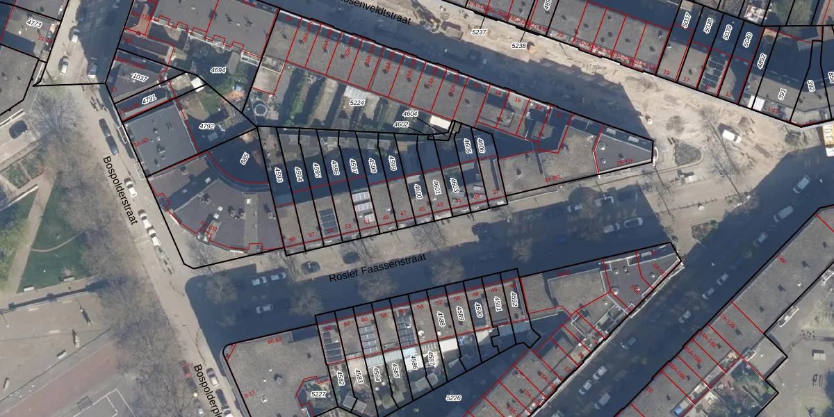 Rosier Faassenstraat 45 is gelegen op kadastraal perceel DHV00H4600. Deze kadastrale aanduiding is uniek en wordt gebruikt door het Kadaster om eigendomsrechten en andere zakelijke rechten vast te leggen. Het perceel maakt onderdeel uit van de kadastrale gemeente Delfshaven.