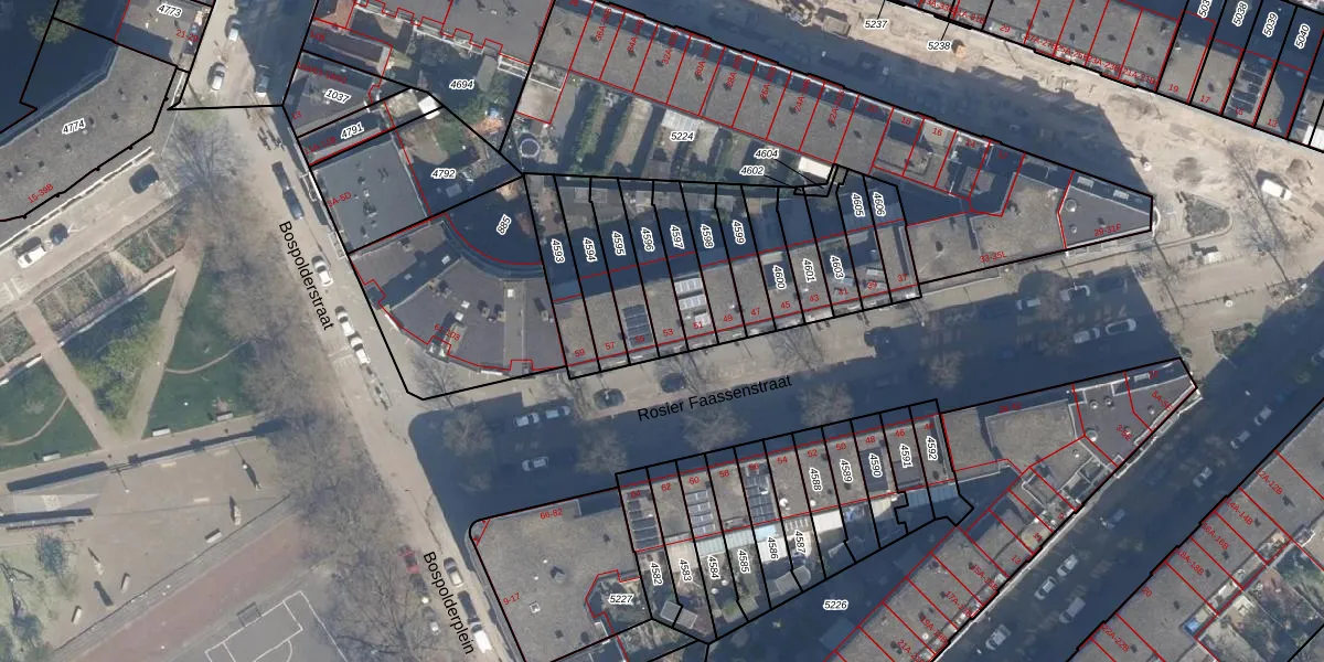 Rosier Faassenstraat 53 is gelegen op kadastraal perceel DHV00H4596. Deze kadastrale aanduiding is uniek en wordt gebruikt door het Kadaster om eigendomsrechten en andere zakelijke rechten vast te leggen. Het perceel maakt onderdeel uit van de kadastrale gemeente Delfshaven.