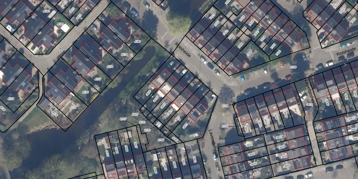 Het perceel waarop Rotsheide 46 staat heeft een oppervlakte van 173 m². Dit is een middelgroot perceel. De perceeloppervlakte wordt geregistreerd door het Kadaster. Gedetailleerde informatie over de maten van dit perceel kunt u vinden in het rapport Kadastrale kaart met maatvoering van Rotsheide 46.