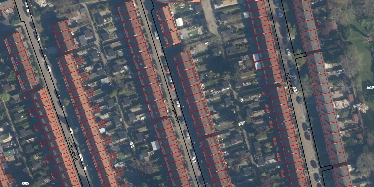 Het perceel waarop Rozegaarde 22 staat heeft een oppervlakte van 1,2 ha. Dit is een zeer groot perceel. De perceeloppervlakte wordt geregistreerd door het Kadaster. Gedetailleerde informatie over de maten van dit perceel kunt u vinden in het rapport Kadastrale kaart met maatvoering van Rozegaarde 22.