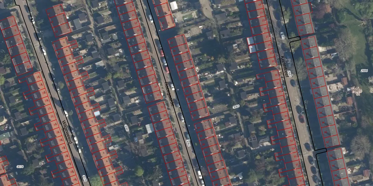 Het perceel waarop Rozegaarde 26 staat heeft een oppervlakte van 1,2 ha. Dit is een zeer groot perceel. De perceeloppervlakte wordt geregistreerd door het Kadaster. Gedetailleerde informatie over de maten van dit perceel kunt u vinden in het rapport Kadastrale kaart met maatvoering van Rozegaarde 26.