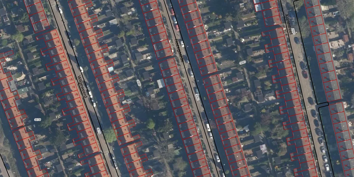 Het perceel waarop Rozegaarde 39 staat heeft een oppervlakte van 1,2 ha. Dit is een zeer groot perceel. De perceeloppervlakte wordt geregistreerd door het Kadaster. Gedetailleerde informatie over de maten van dit perceel kunt u vinden in het rapport Kadastrale kaart met maatvoering van Rozegaarde 39.