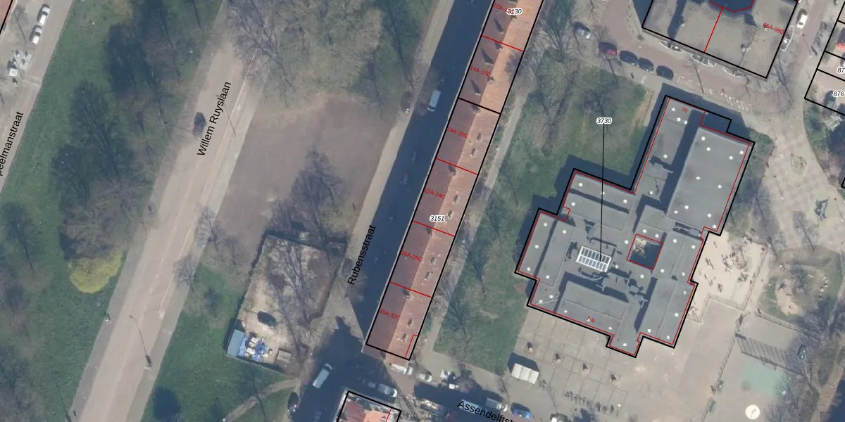 Rubensstraat 24-A is gelegen op kadastraal perceel KLG00F3151. Deze kadastrale aanduiding is uniek en wordt gebruikt door het Kadaster om eigendomsrechten en andere zakelijke rechten vast te leggen. Het perceel maakt onderdeel uit van de kadastrale gemeente Kralingen.