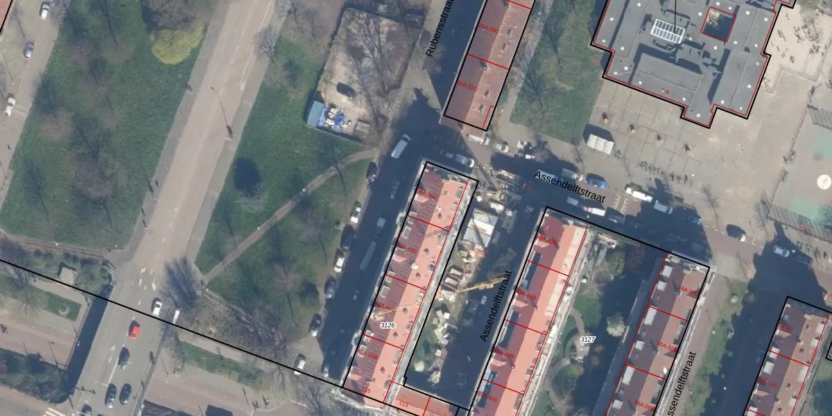 Rubensstraat 38-B is gelegen op kadastraal perceel KLG00F3126. Deze kadastrale aanduiding is uniek en wordt gebruikt door het Kadaster om eigendomsrechten en andere zakelijke rechten vast te leggen. Het perceel maakt onderdeel uit van de kadastrale gemeente Kralingen.