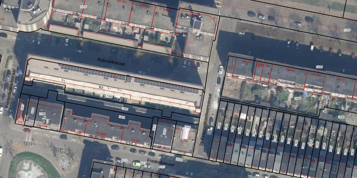 Rubroekstraat 8 is gelegen op kadastraal perceel RTD07R7296. Deze kadastrale aanduiding is uniek en wordt gebruikt door het Kadaster om eigendomsrechten en andere zakelijke rechten vast te leggen. Het perceel maakt onderdeel uit van de kadastrale gemeente Rotterdam.