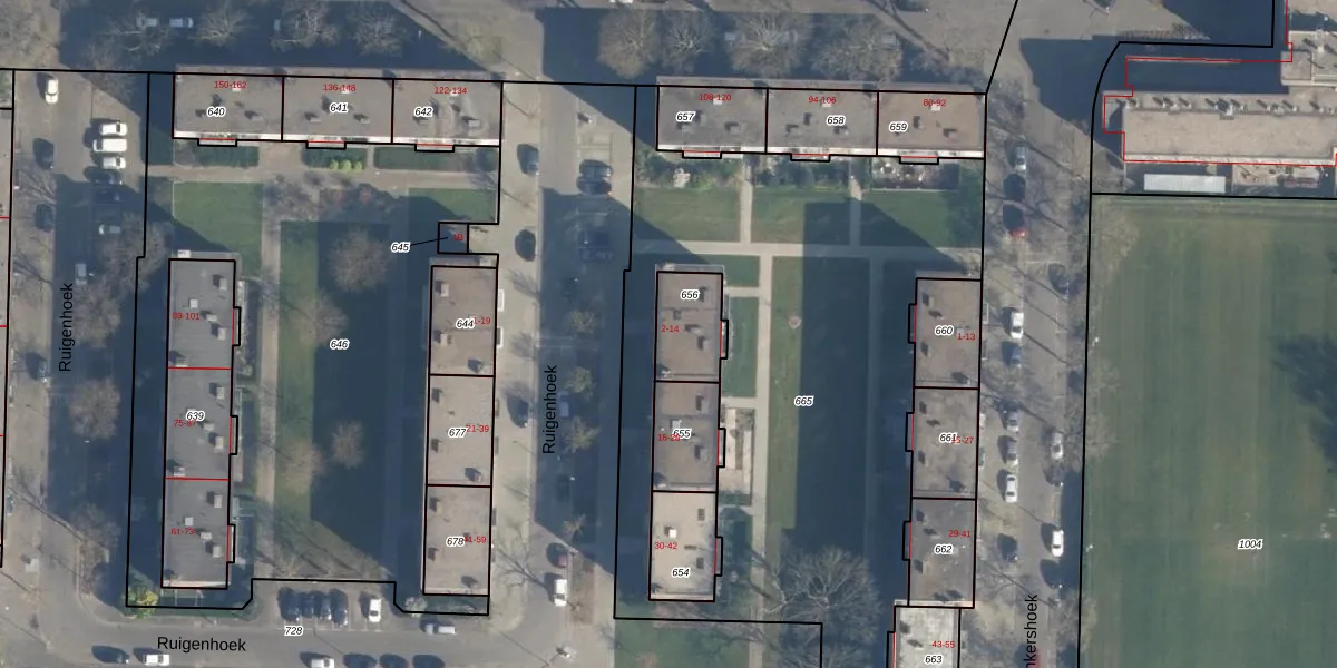 Ruigenhoek 10 is gelegen op kadastraal perceel CLS00K656. Deze kadastrale aanduiding is uniek en wordt gebruikt door het Kadaster om eigendomsrechten en andere zakelijke rechten vast te leggen. Het perceel maakt onderdeel uit van de kadastrale gemeente Charlois.