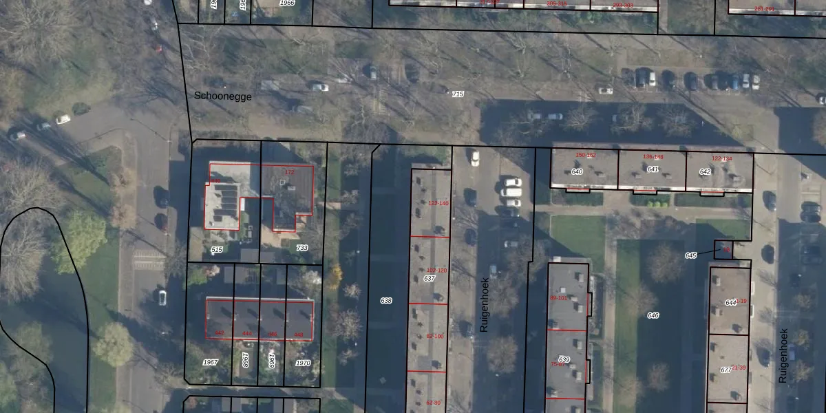 Het perceel waarop Ruigenhoek 136 staat heeft een oppervlakte van 636 m². Dit is een groot perceel. De perceeloppervlakte wordt geregistreerd door het Kadaster. Gedetailleerde informatie over de maten van dit perceel kunt u vinden in het rapport Kadastrale kaart met maatvoering van Ruigenhoek 136.