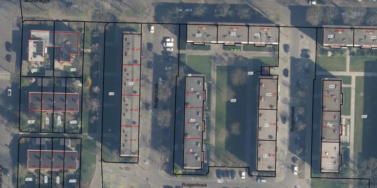 Ruigenhoek 95 is gelegen op kadastraal perceel CLS00K639. Deze kadastrale aanduiding is uniek en wordt gebruikt door het Kadaster om eigendomsrechten en andere zakelijke rechten vast te leggen. Het perceel maakt onderdeel uit van de kadastrale gemeente Charlois.