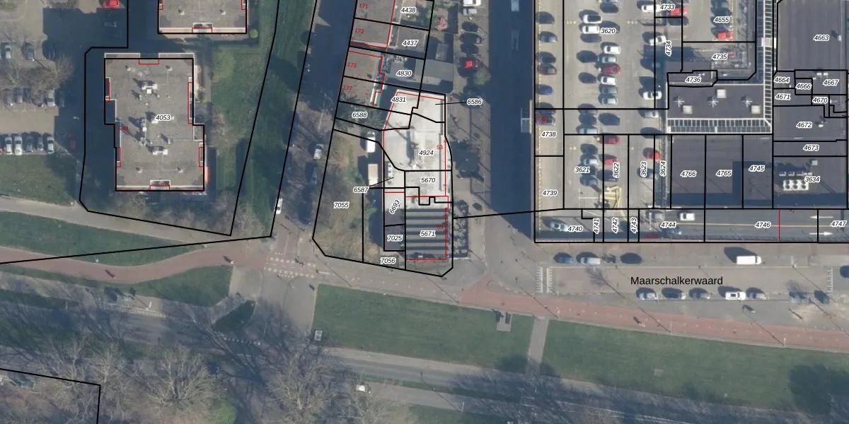 Het perceel waarop het adres ligt is ISM01-B-5671. De afkorting 'ISM01' staat voor kadastrale gemeente IJsselmonde. Het perceel is 197 m² groot. Dat is kleiner dan de gemiddelde perceeloppervlakte in IJsselmonde, dat op 872,38 m² ligt. Het grootste perceel in de kadastrale gemeente is 46,2 ha. Het kleinste perceel heeft een oppervlakte van 0 m². Er zijn geen andere adressen aanwezig op het perceel. De huidige grenzen van het perceel zijn digitaal in de Basisregistratie Kadaster (BRK) geregistreerd op 07-12-2015.