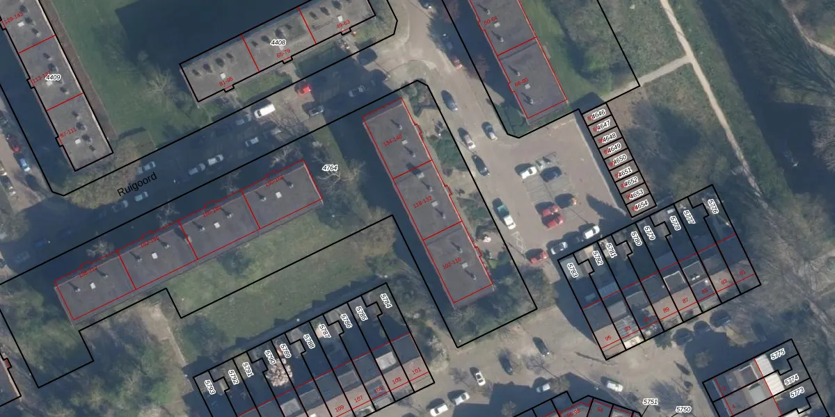 Het perceel waarop Ruigoord 120 staat heeft een oppervlakte van 3614 m². Dit is een zeer groot perceel. De perceeloppervlakte wordt geregistreerd door het Kadaster. Gedetailleerde informatie over de maten van dit perceel kunt u vinden in het rapport Kadastrale kaart met maatvoering van Ruigoord 120.