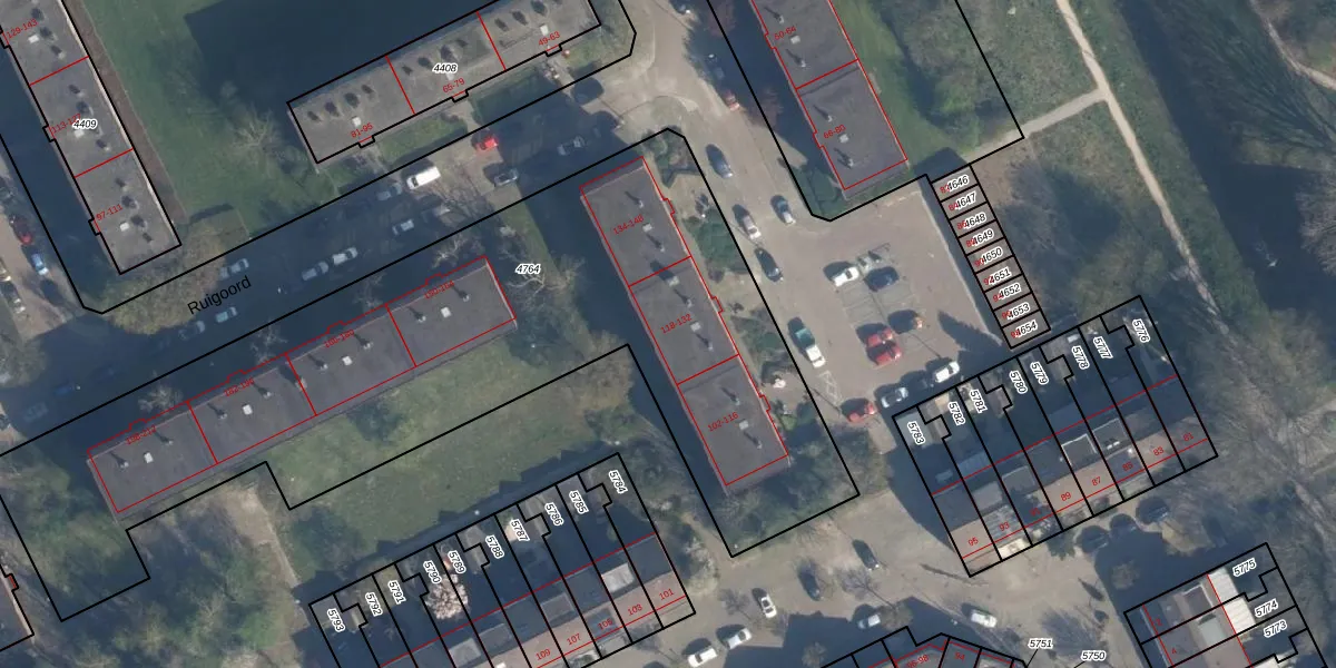 Het perceel waarop Ruigoord 124 staat heeft een oppervlakte van 3614 m². Dit is een zeer groot perceel. De perceeloppervlakte wordt geregistreerd door het Kadaster. Gedetailleerde informatie over de maten van dit perceel kunt u vinden in het rapport Kadastrale kaart met maatvoering van Ruigoord 124.