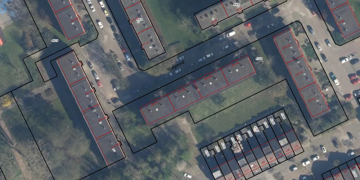 Het perceel waarop Ruigoord 188 staat heeft een oppervlakte van 3614 m². Dit is een zeer groot perceel. De perceeloppervlakte wordt geregistreerd door het Kadaster. Gedetailleerde informatie over de maten van dit perceel kunt u vinden in het rapport Kadastrale kaart met maatvoering van Ruigoord 188.