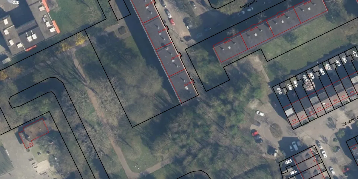 Het perceel waarop Ruigoord 222 staat heeft een oppervlakte van 4397 m². Dit is een zeer groot perceel. De perceeloppervlakte wordt geregistreerd door het Kadaster. Gedetailleerde informatie over de maten van dit perceel kunt u vinden in het rapport Kadastrale kaart met maatvoering van Ruigoord 222.