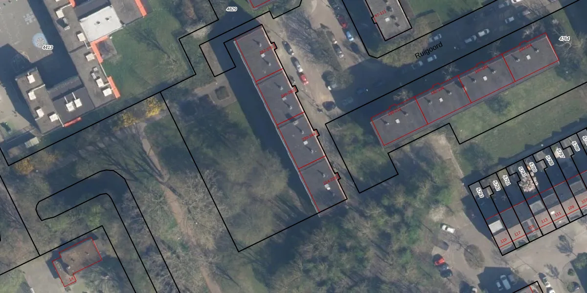 Het perceel waarop Ruigoord 242 staat heeft een oppervlakte van 4397 m². Dit is een zeer groot perceel. De perceeloppervlakte wordt geregistreerd door het Kadaster. Gedetailleerde informatie over de maten van dit perceel kunt u vinden in het rapport Kadastrale kaart met maatvoering van Ruigoord 242.