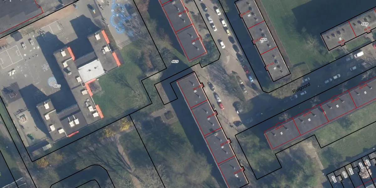 Het perceel waarop Ruigoord 270 staat heeft een oppervlakte van 4397 m². Dit is een zeer groot perceel. De perceeloppervlakte wordt geregistreerd door het Kadaster. Gedetailleerde informatie over de maten van dit perceel kunt u vinden in het rapport Kadastrale kaart met maatvoering van Ruigoord 270.
