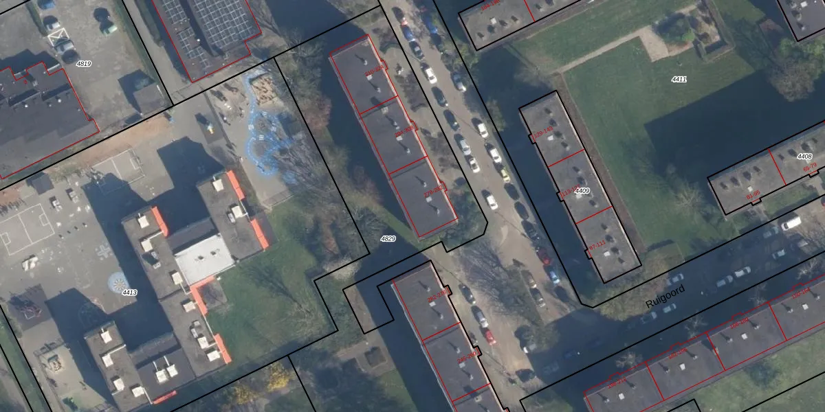 Het perceel waarop Ruigoord 282 staat heeft een oppervlakte van 4397 m². Dit is een zeer groot perceel. De perceeloppervlakte wordt geregistreerd door het Kadaster. Gedetailleerde informatie over de maten van dit perceel kunt u vinden in het rapport Kadastrale kaart met maatvoering van Ruigoord 282.