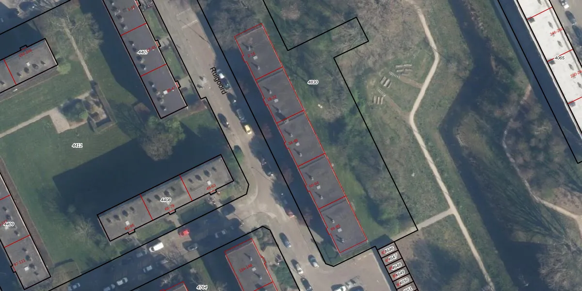 Het perceel waarop Ruigoord 42 staat heeft een oppervlakte van 4510 m². Dit is een zeer groot perceel. De perceeloppervlakte wordt geregistreerd door het Kadaster. Gedetailleerde informatie over de maten van dit perceel kunt u vinden in het rapport Kadastrale kaart met maatvoering van Ruigoord 42.