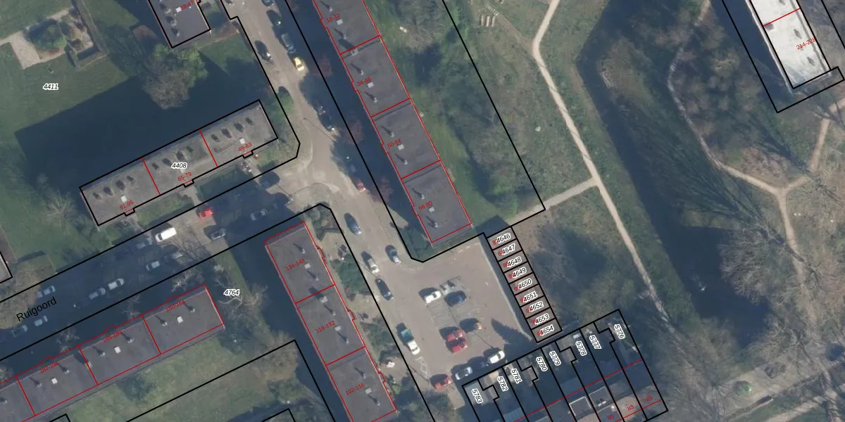 Het perceel waarop Ruigoord 66 staat heeft een oppervlakte van 4510 m². Dit is een zeer groot perceel. De perceeloppervlakte wordt geregistreerd door het Kadaster. Gedetailleerde informatie over de maten van dit perceel kunt u vinden in het rapport Kadastrale kaart met maatvoering van Ruigoord 66.